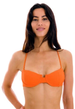Textured Orange Balconette Top With Crossed Straps – Top St-tropez-tangerina Balconet
