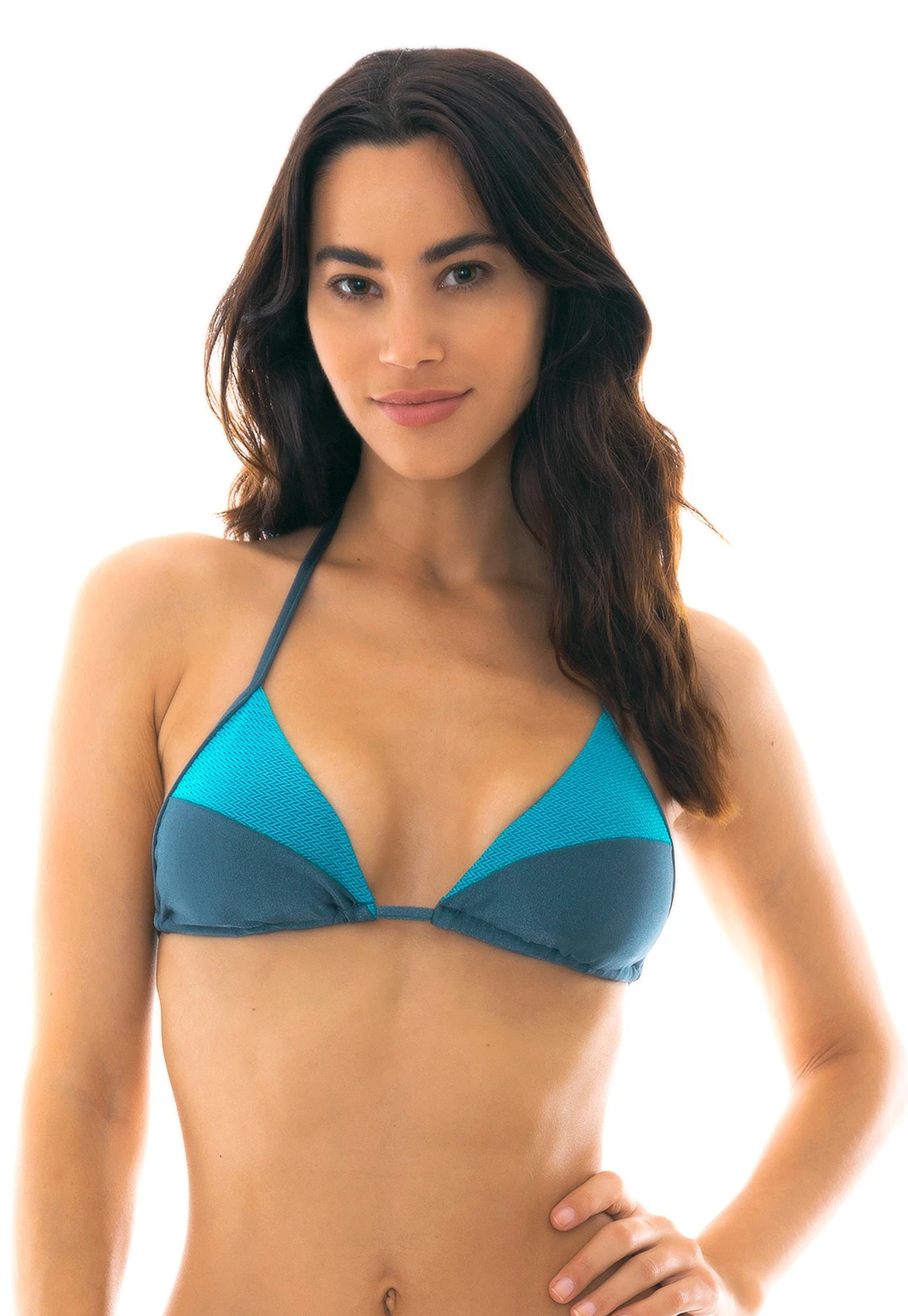 Description Blue tones textured triangle bikini top – TOP GALAXIA RECORTE TRI Rio de Sol