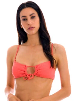 Embossed Textured Coral Pink Front-tie Top – Top Dots-tabata Mila