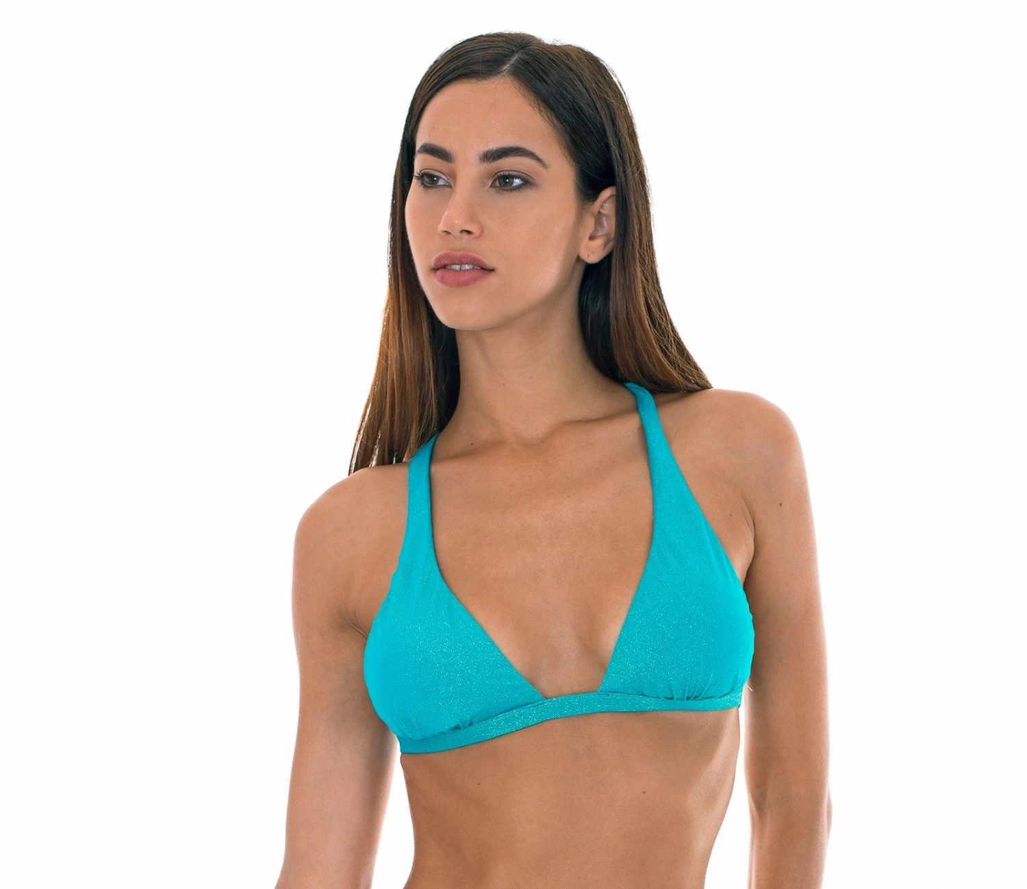 Description Fixed blue lurex triangle halterneck top – SOUTIEN RADIANTE AZUL SPORTY MINI Rio de Sol