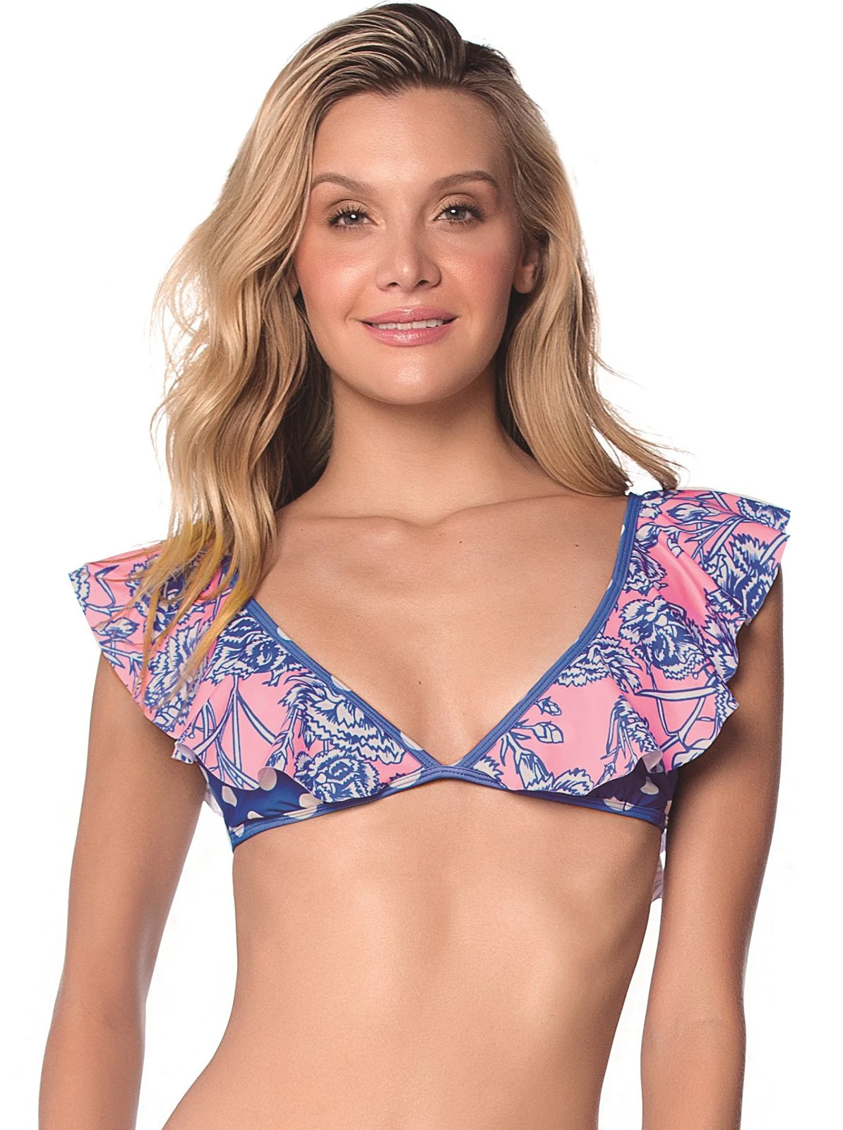 Description Floral & polka dot ruffle top – TOP CARNATION LUAU LATIN Palmacea