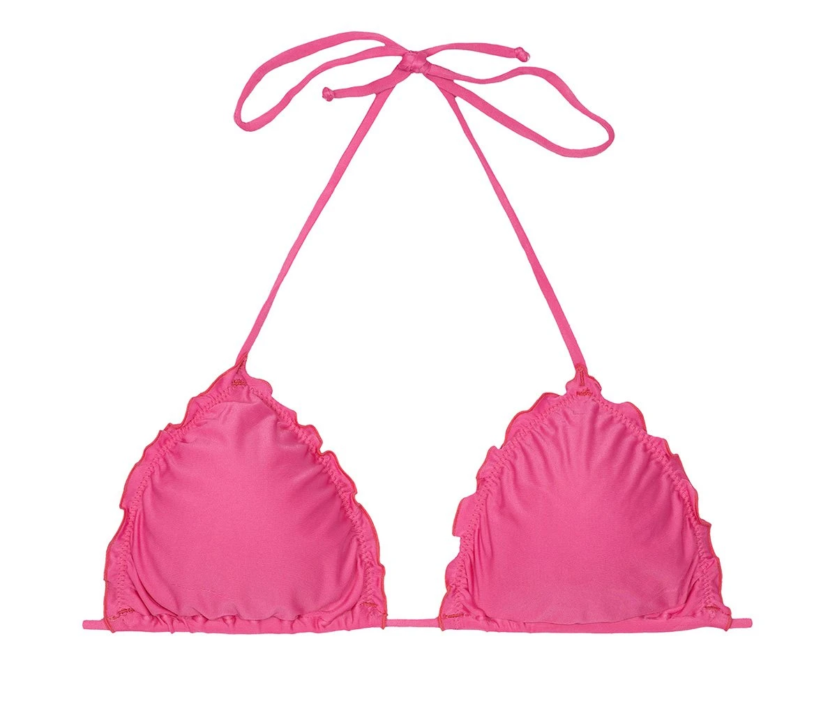 Description Pink triangle bikini top with ruffle trim – SOUTIEN LULI PINK Rio de Sol