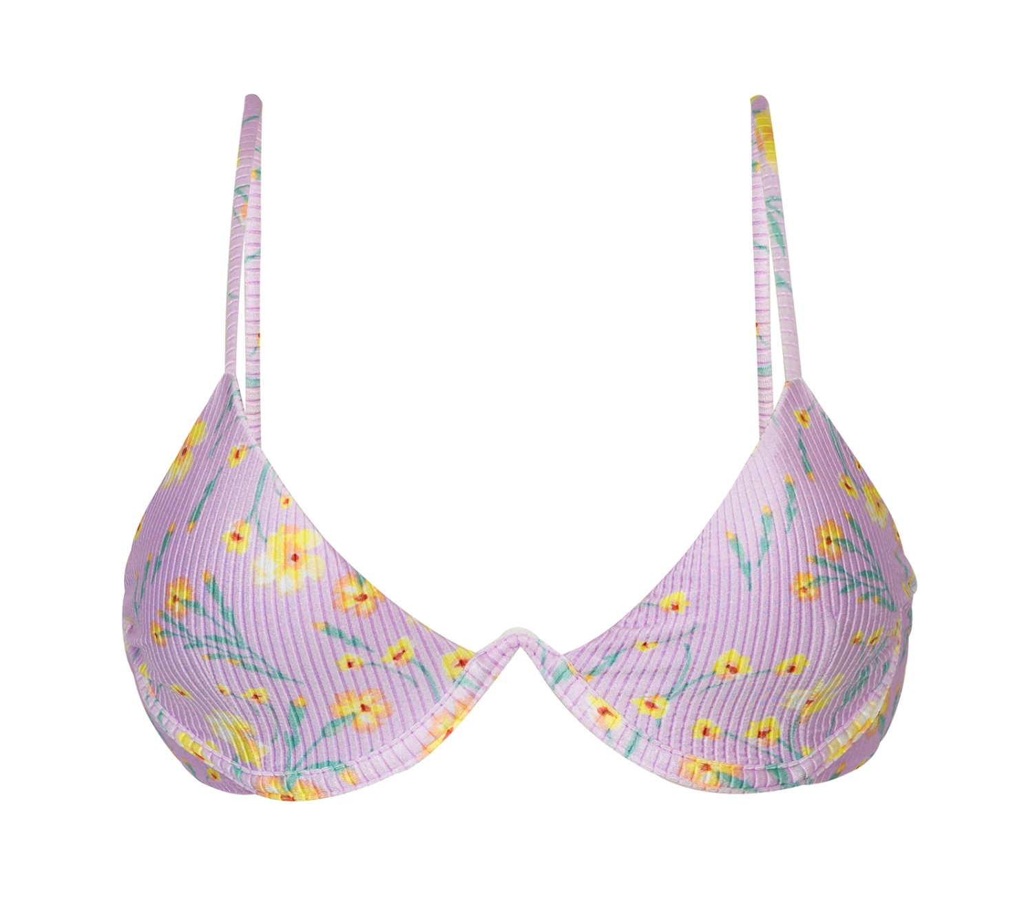 Description Purple V-underwired bikini top in flowers – TOP CANOLA TRI-ARO Rio de Sol