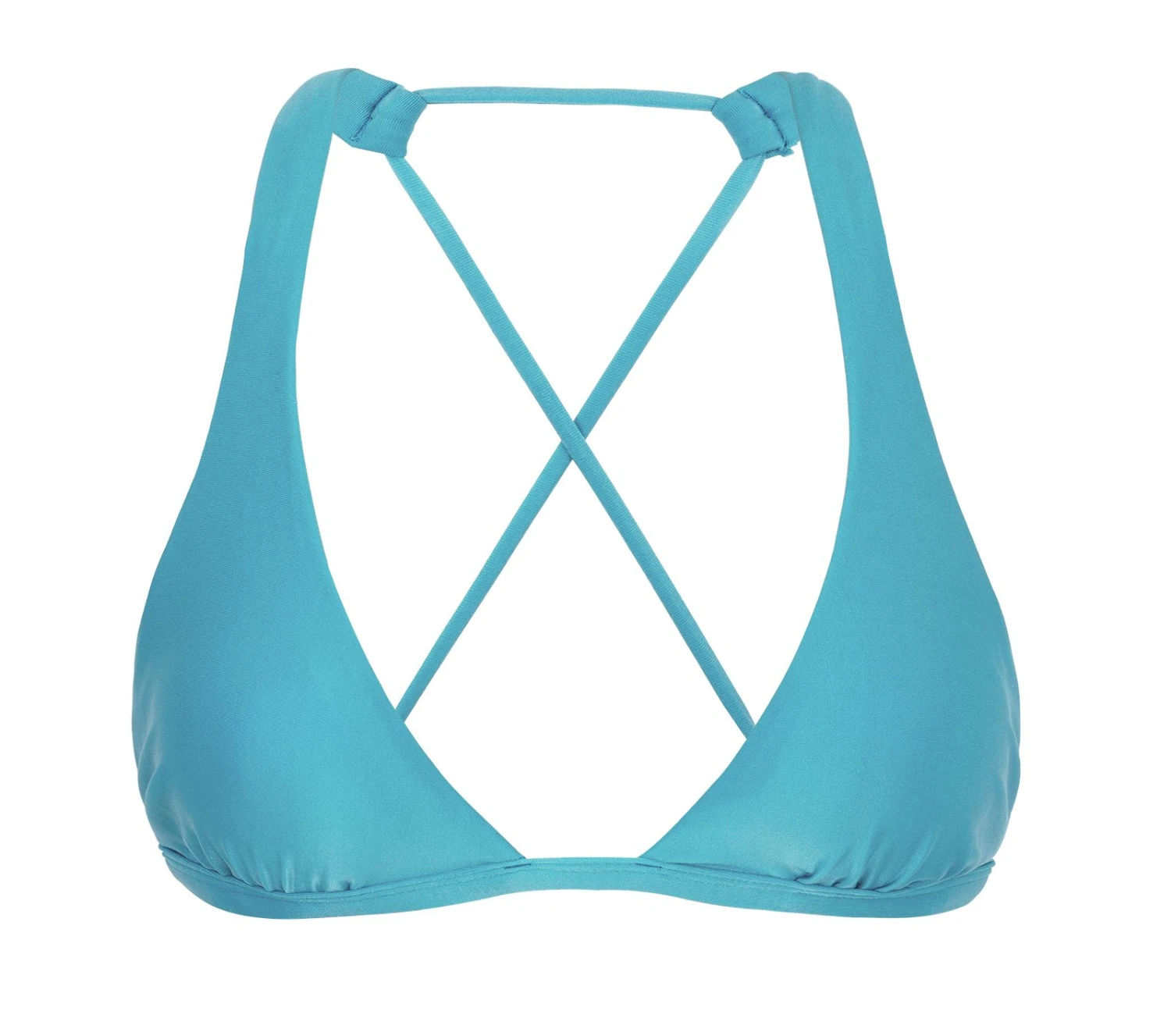 Description Sky blue triangle halter top with crossed back – TOP ORVALHO CORTINAO Rio de Sol