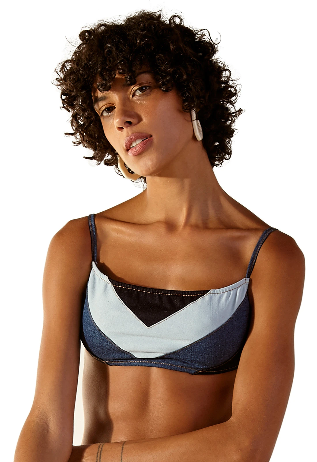 Description Tricolor jeans bikini top – TOP VENUS JEANS Blueman