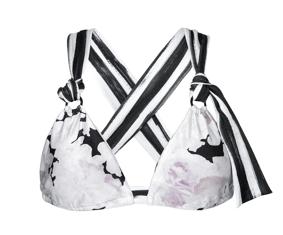 Description Unusual striped and floral triangle bikini top – SOUTIEN MARGHERITA STRIPES Loer