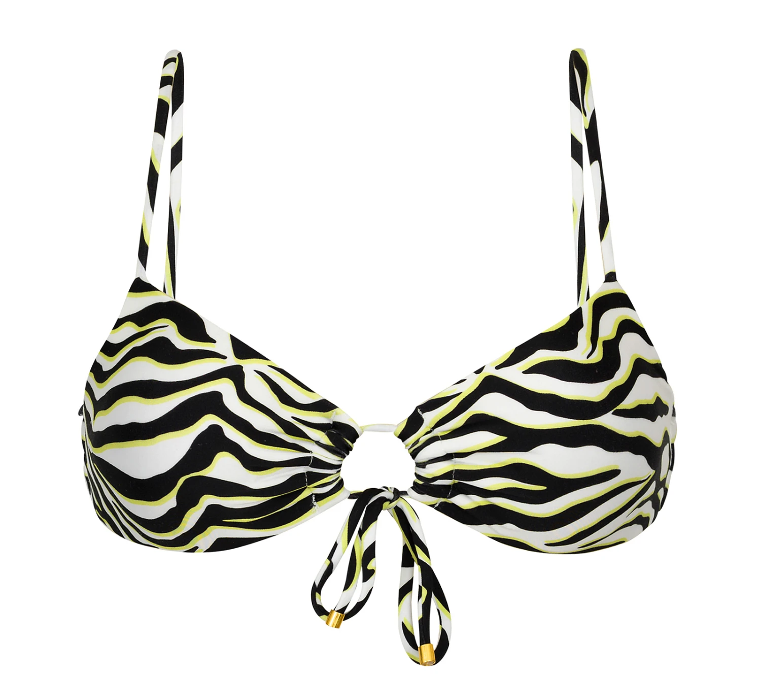 Description White & black tabby front-tie bikini top – TOP WILD-BLACK MILA Rio de Sol